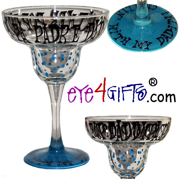 LARGE 12 ounce margarita glass. Painted around the top of the glass "Pop.Daddy.Papa.Padre.Dad.Pops.Father"