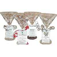 a set of four (4) 7 1/2 inch high, 10 ounce martini glasses.