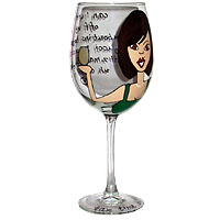 single 19.25oz, 9 inch tall white wine glass. She wears a